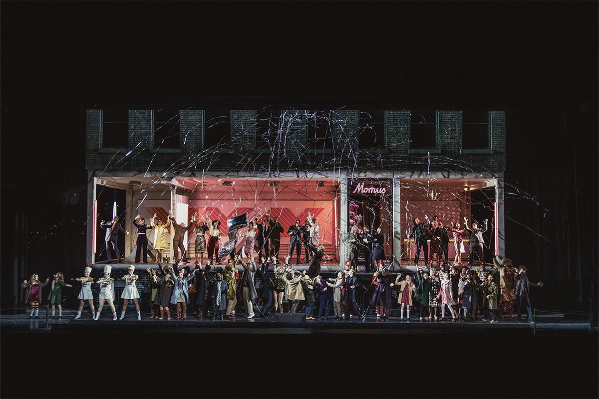 På caféet träffar de resten av gänget. Galleristen Musetta dyker upp med sin sugar-daddy Alcindoro, en äldre rik man som hjälper till med hennes galleri. På något sätt lyckas hon bli av med Alcindoro och få honom att betala hela notan. Hon lämnar caféet med sin ex-pojkvän, gängets konstnär Marcello.